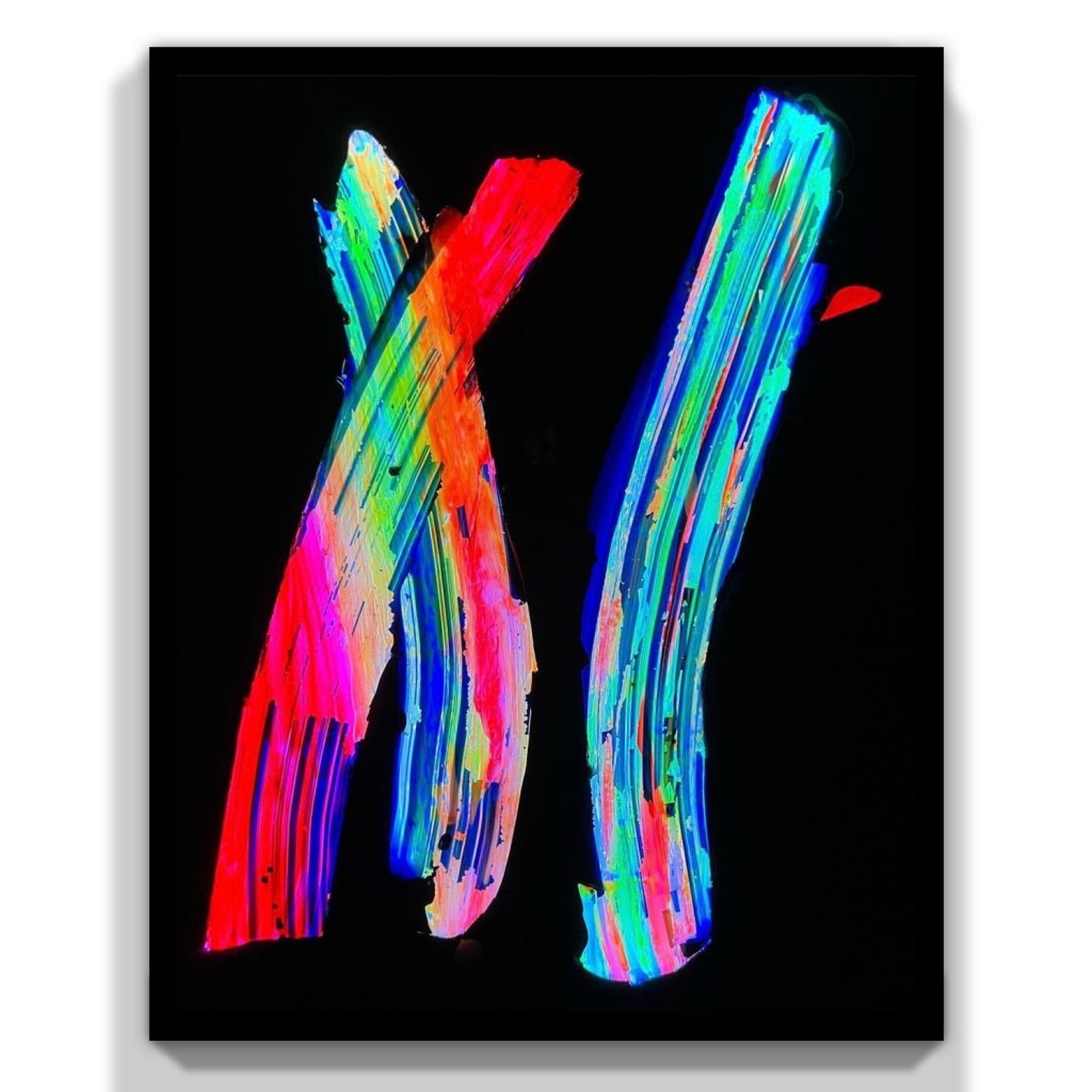 Technique mixte sur verre avec Led intelligente. 50X70, 2022. Collection privée ,Nice